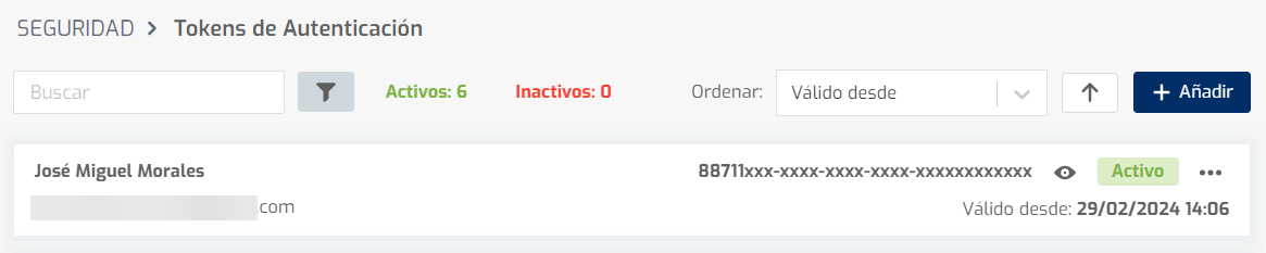 Un token de autenticación es una cadena alfanumérica asociada a un usuario con un periodo de validez
